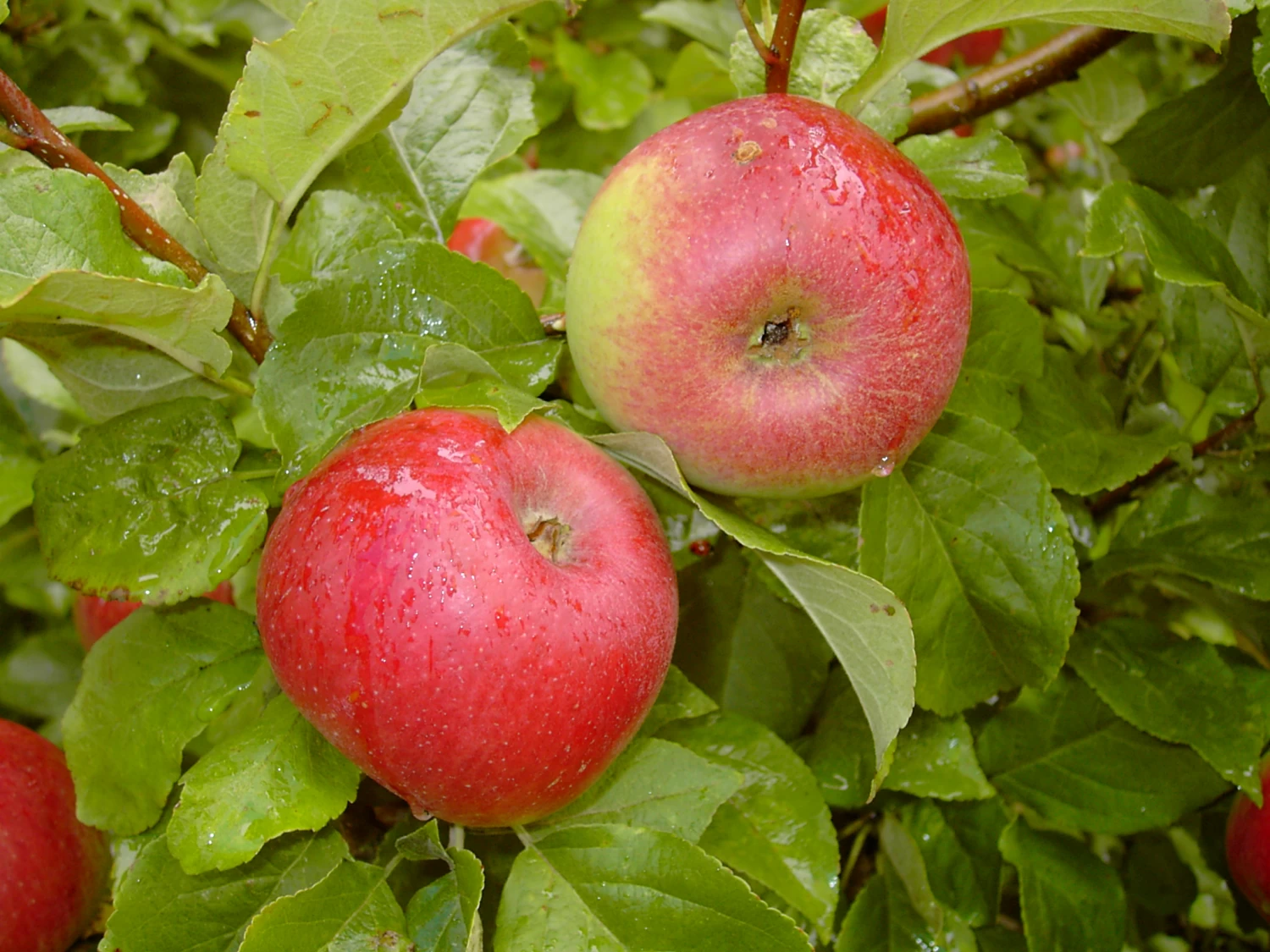 Frucht: Sehr ebenmäßige, breitkugelige Form. Mittelgroß bis groß. Glatte, weißlichgelbe Schale, zur Reifezeit gerötet. Erfrischendes, mild säuerliches Aroma. Saftiges Fruchtfleisch. Pflückreif Ende September bis Mitte Oktober, genußreif Oktober bis Januar.